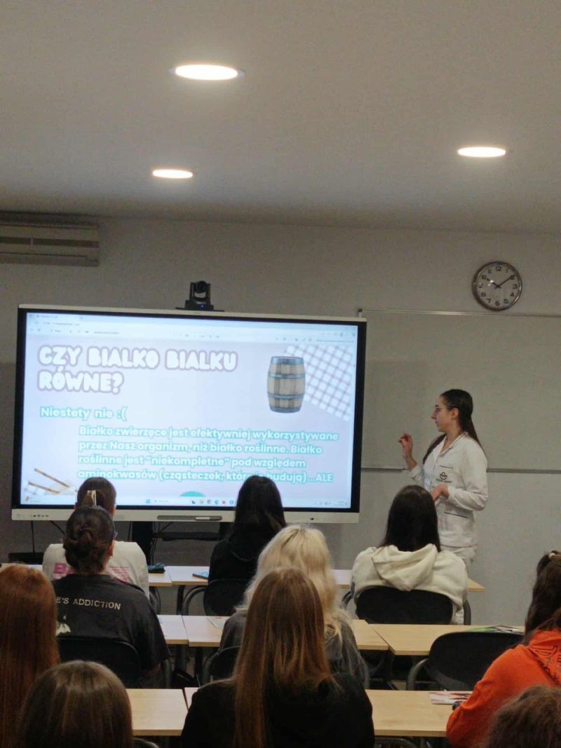 W czasie pierwszego bloku zajęć dowiedzieliśmy się co nieco na temat składników pokarmowych oraz naszym na nie zapotrzebowanu. Przy okazji mogliśmy zweryfikować, czy nasza podręcznikowa wiedza jest zgodna z tym, co mówią aktualne badania dotyczące żywienia. Nie obyło się też bez ciekawostek z zakresu przyswajalności poszczególnych składników pokarmowych. Pani pokazała nam również najczęstsze błędy w żywieniu oraz sposoby jak im zapobiegać.