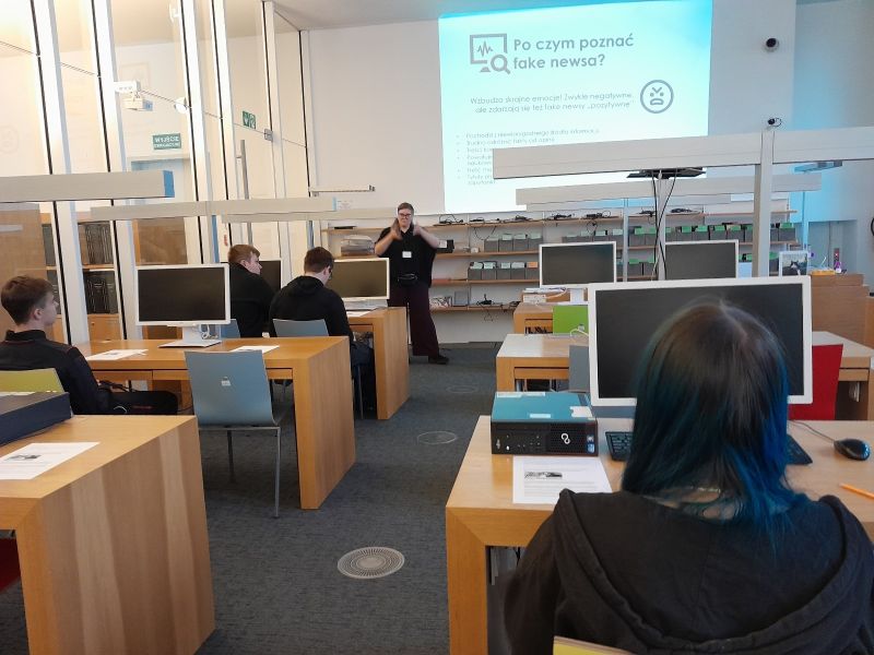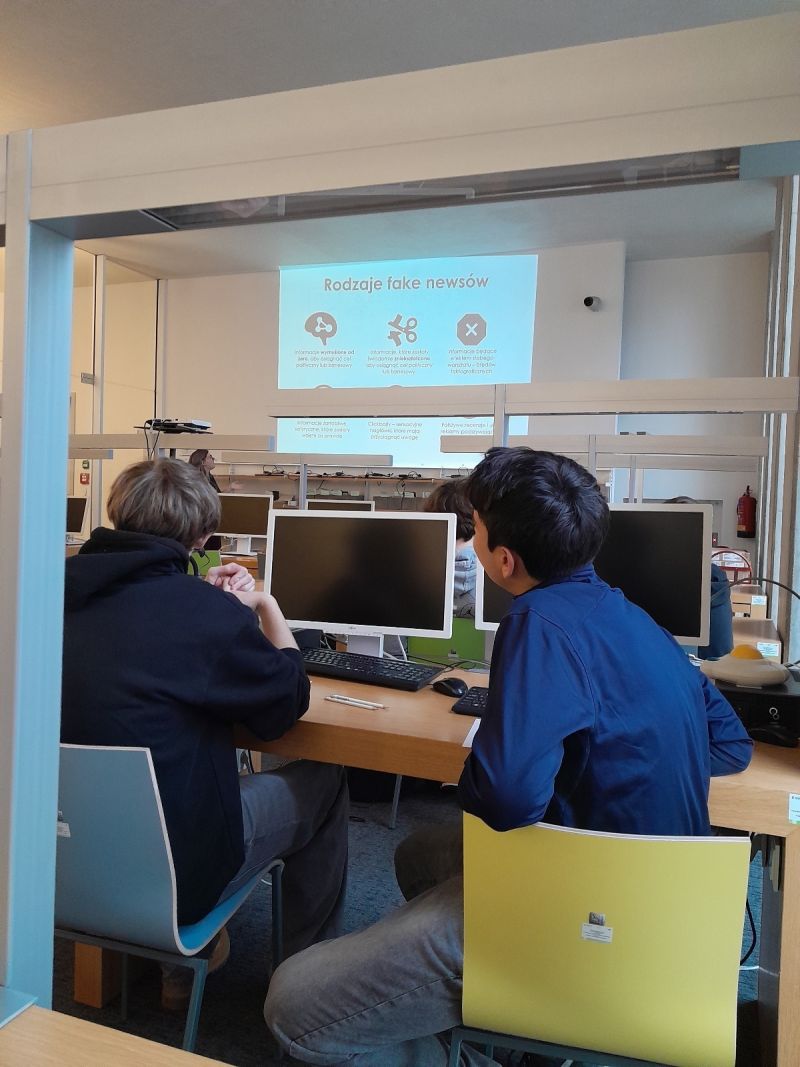 Dnia 2 grudnia uczniowie klasy IIa udali się do Biblioteki Raczyńskich na lekcję biblioteczną „Prawda czy fejk? O weryfikowaniu informacji medialnych”. Lekcja poświęcona była zagadnieniu rzetelności informacji we współczesnych mediach. Uczniowie poznali główne cechy fake newsów, takie jak sensacyjność, manipulacja emocjami czy brak źródeł oraz różne rodzaje fake newsów, takie jak clicbajty, fałszywe recenzje, zniekształcone informacje będące błędami faktograficznymi, ukryte reklamy, fotomontaże i w końcu, informacje wymyślone od zera, po prosu wyssane z palca. Podczas zajęć uczniowie nauczyli się podstaw krytycznego myślenia i metod sprawdzania wiarygodności informacji: weryfikowania autorów i źródeł, porównywania treści z innymi publikacjami, analizowania dat, zdjęć i nagłówków oraz korzystania z profesjonalnych serwisów fact-checkingowych. W praktycznych ćwiczeniach mieli okazję samodzielnie ocenić przykłady wiadomości i rozsądzić, które z nich są prawdziwe, a które fałszywe. Na zakończenie podkreślono, że odpowiedzialne korzystanie z mediów i umiejętność odróżniania faktów od manipulacji jest kluczowe zarówno w życiu codziennym, jak i w świadomym uczestnictwie w społeczeństwie informacyjnym.